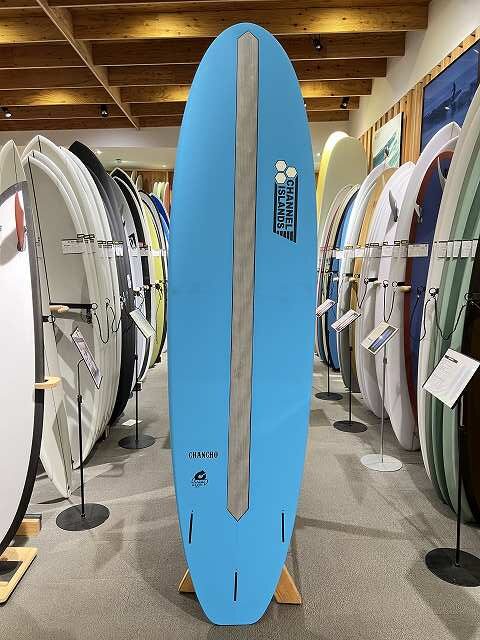 CHANCHOはCHANNEL ISLANDSのWATER HOGのDNAを引き継いだミッドレングスボードです。波を簡単にキャッチできるようロッカーは抑えられていますが、適度に絞り込まれたノーズエリアやテールエリアのVEEボトムによって動きも軽快になっています。