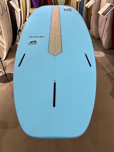 【CHANCHO】は波を簡単にキャッチできるようにノーズ付近にボリュームを持たせ、またスピードとコントロールも出せるよう、フラット~シングル~ダブルVeeにし、日本のスモールコンディションに、よりマッチしたフレックスで、中上級者はもちろんの事、ビギナーからカムバックユーザーの方でも充分に楽しめれます。