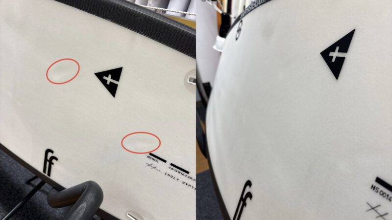 新品未使用品であっても、店舗にて展示中についた細かい傷がある場合もございます。中古ボード特有のものでございまして、価格がお安くなっている理由の一つでございます。