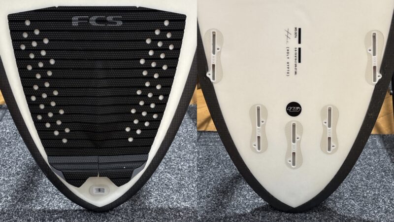 レイル形状はセンター付近に十分なボリューム、ノーズとテールエリアのレイルはテーパード。
