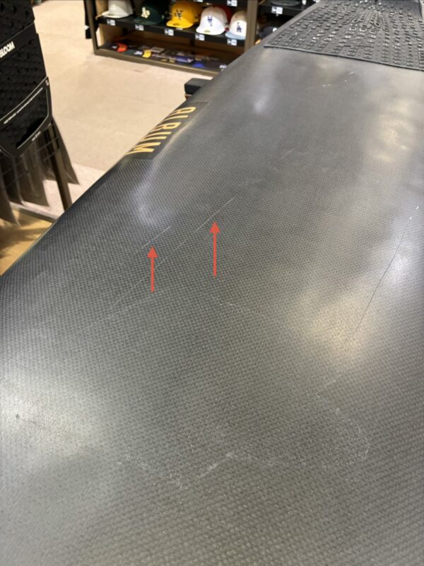 新品未使用品であっても、店舗にて展示中についた細かい傷がある場合もございます。中古ボード特有のものでございまして、価格がお安くなっている理由の一つでございます。
