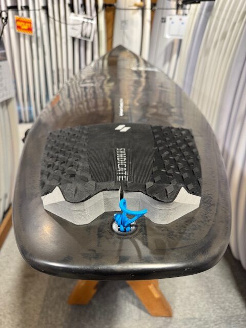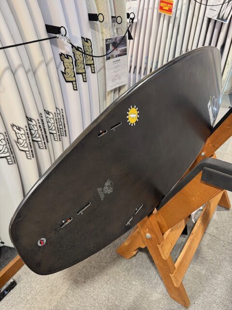 前足あたりのシングルコンケーブがアクセルとなり、フィンの間のダブルコンケーブが小波でもレールからレールへの切り返しを楽にしてくれる。