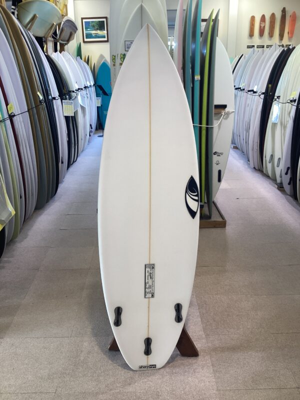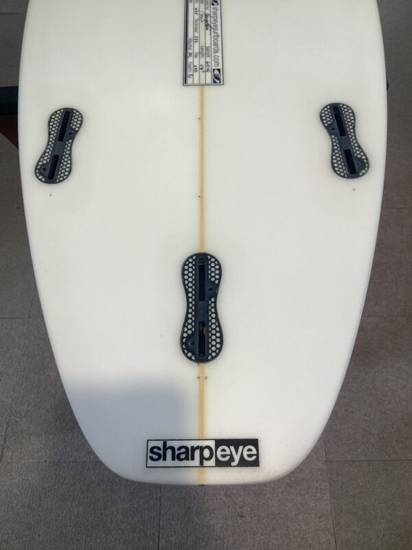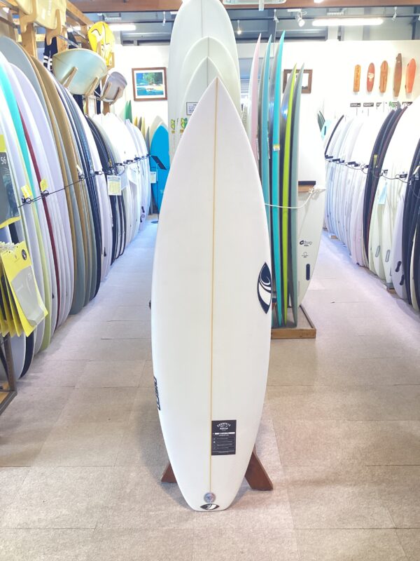 ボトム形状は、ミディアムのシングルコンケーブから、フィン間の深いダブルコンケーブへとつながり、最後はフラットなアウトへと抜ける構造。これにより、テイクオフ直後からスピードに乗りやすく、安定感を保ちつつもドライブ性能も十分。