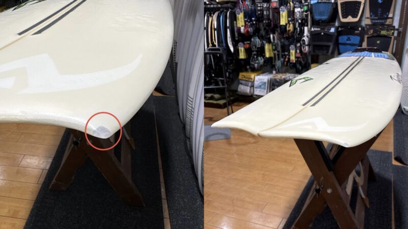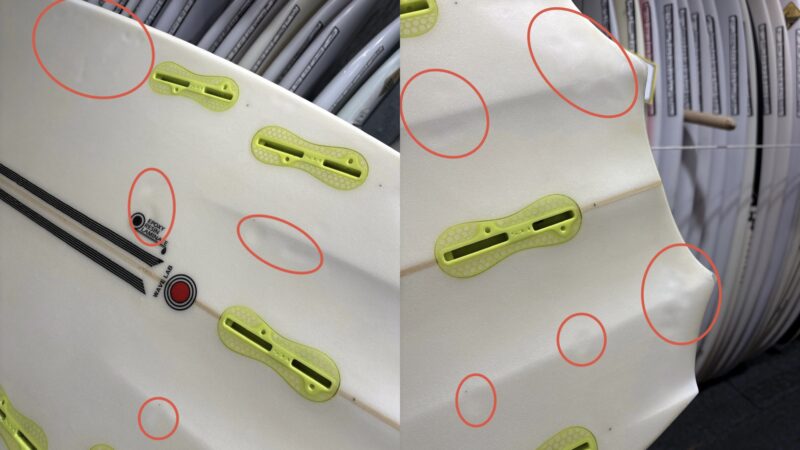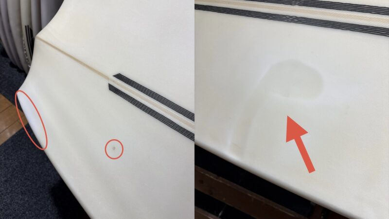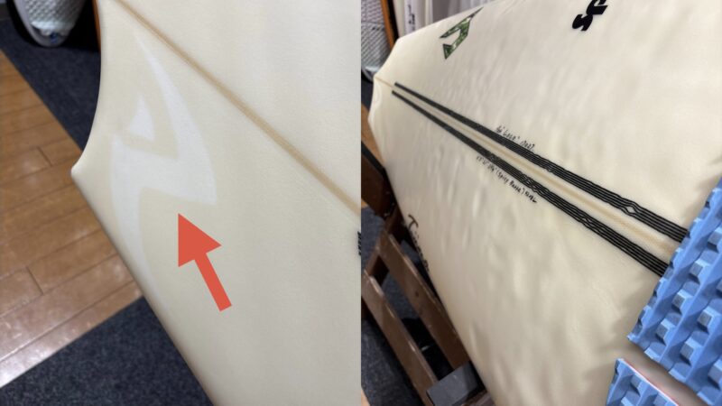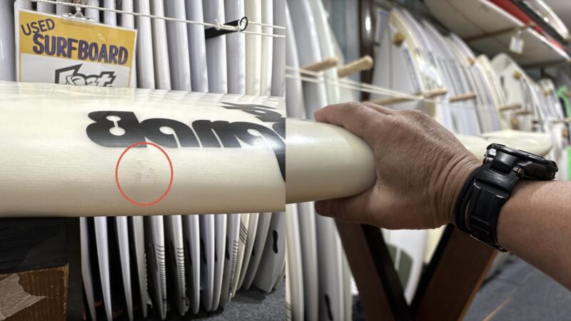 新品未使用品であっても、店舗にて展示中についた細かい傷がある場合もございます。中古ボード特有のものでございまして、価格がお安くなっている理由の一つでございます。