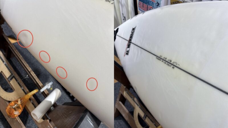 新品未使用品であっても、店舗にて展示中についた細かい傷がある場合もございます。中古ボード特有のものでございまして、価格がお安くなっている理由の一つでございます。