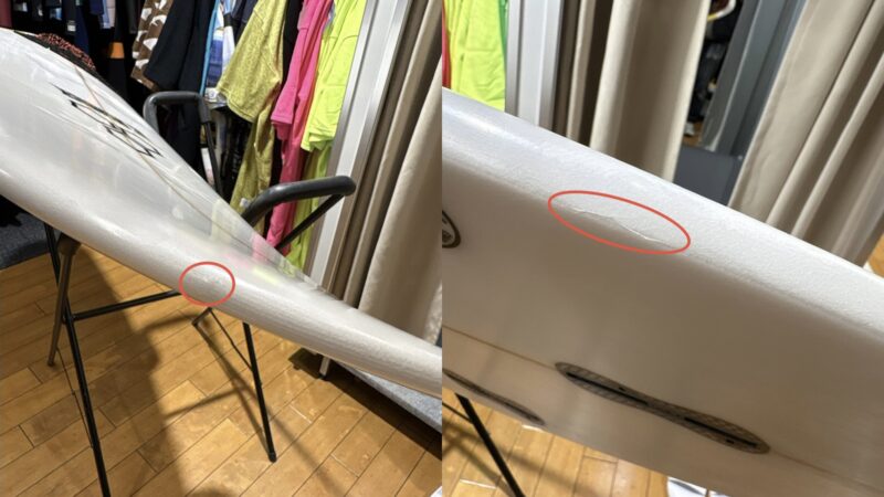 新品未使用品であっても、店舗にて展示中についた細かい傷がある場合もございます。中古ボード特有のものでございまして、価格がお安くなっている理由の一つでございます。