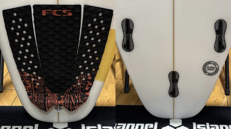 前足のシングルコンケーブがアクセルとなり、フィンの間のダブルコンケーブが切り返しを楽に。
