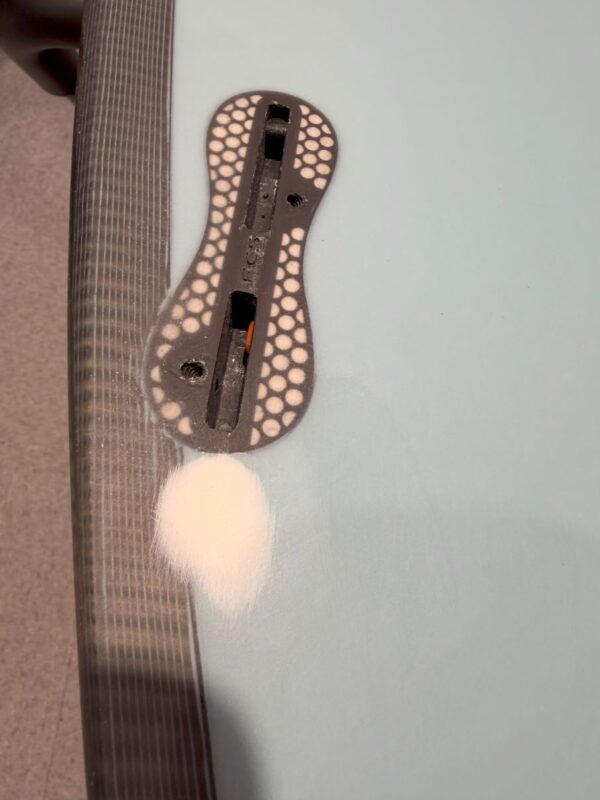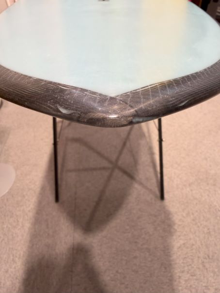 レフトフィンBOX 下、リペア痕あり。セルフリペアのため、色はクリアですが綺麗に直っております。