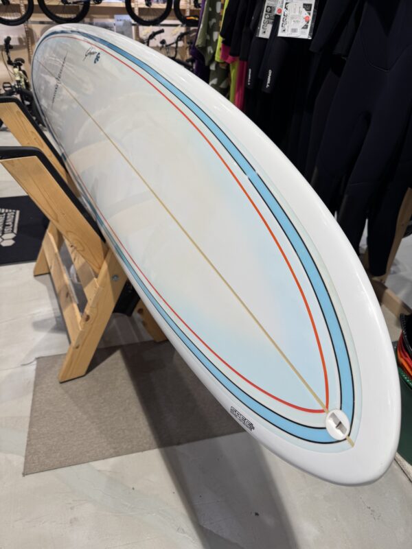 へこみ少なくクラックなど跡のないとてもきれいなボードです。ノーズにわずかに擦れ傷があります。