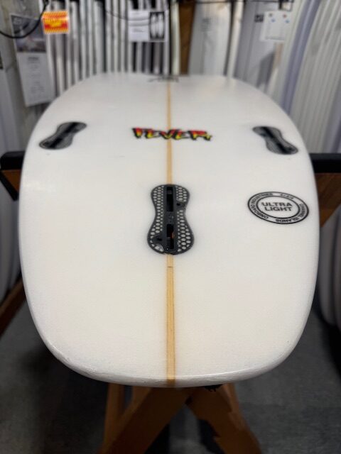 The Feverはアル・メリックがこれまで高いパフォーマンスを証明してきたショートボードのデザインがベースとなっているモデル。マイク・アンドリュースとパトリック・ガダスカスがこのボードをデザインする上で目指したところは、誰が使っても「乗った瞬間にそのスピード性能を感じられ、創造性を掻き立てられるボード」で、誰もが入手できるツアーレベルのパフォーマンスボードを作り出すことだった。The Proton、The Rookie、The MBMといったモデルからパットが気に入っている要素を抜き出し、絶妙なシングルコンケーブと緩めのロッカーをそうした要素と組み合わせることで、広いスイートスポットを有するボードが出来上がった。ややストレート気味のアウトラインと緩めのロッカーが特徴なThe Feverは、幅広いコンディション、いろいろな波に対応するオールラウンドなデザインであることが証明されている。また、The FeverはFlex-barテクノロジーとの相性も抜群だ。「このボードはとにかく速いから、Flex-barにするとさらに爆発力と鋭さが際立つし、相対的にシンプルなアウトラインと合っているんだと思う」