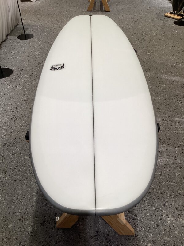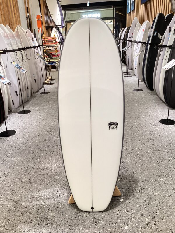 “アウトラインはLOST「BEAN BAG」(ビーンバグ)モデルのノーズデザインを引き継いだ事でパドルスピードを維持、更に「COUH POTATO」(カウチポテト)モデルのキーとなる運動性能要素を融合して、極小ウェーブに対応出来るようにデザインされた、ノーズからテールにかけて丸々としたボリュームタップリのエクストラワイドなアウトラインとなっています。