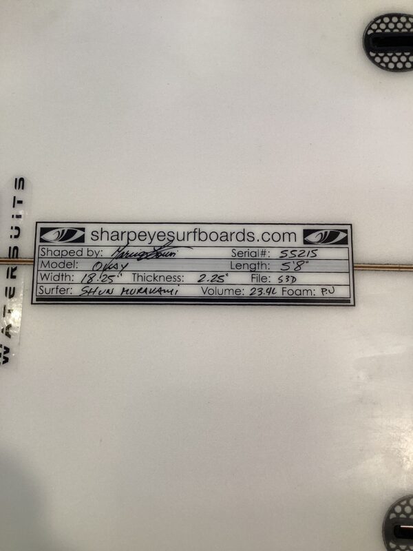 【SHARP EYE】OKAY 5’8 PU SHARP EYE ハイパフォーマンス プロ使用ボード タイプ: ショートボード ブランド: SHARP EYE シャープアイ 長さ: 5’8”(172.72cm) 幅: 詳細エリアに表示 厚み: 詳細エリアに表示 容積: 23.4CL フィンタイプ: FCS2 3PLUG 価格: ¥69,900-(税込) 在庫店舗: 木更津店 0438-40-5211 フィンの付属: 無 在庫: 若干の、凹み、黄ばみがありますが綺麗です! ボトムも綺麗です。 幅:18、25 厚さ:2、25 PU SHARP EYE ハイパフォーマンス プロ使用ボード 「【CHANNEL ISLANDS】CI PRO 5’9 1/2」