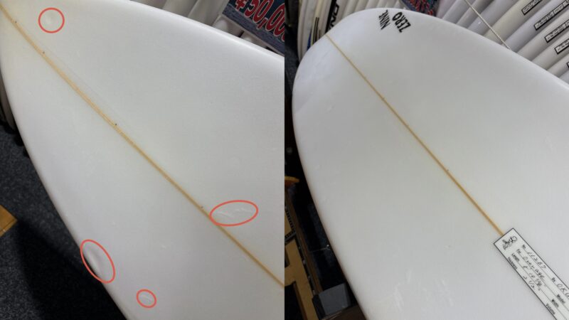 新品未使用品であっても、店舗にて展示中についた細かい傷がある場合もございます。中古ボード特有のものでございまして、価格がお安くなっている理由の一つでございます。