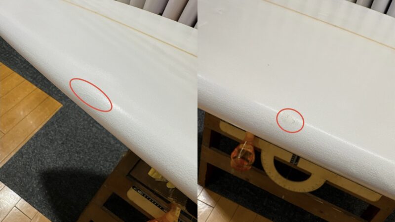 ノーズはキレイです、テールは1か所修理 ( 青〇 ) をしています。