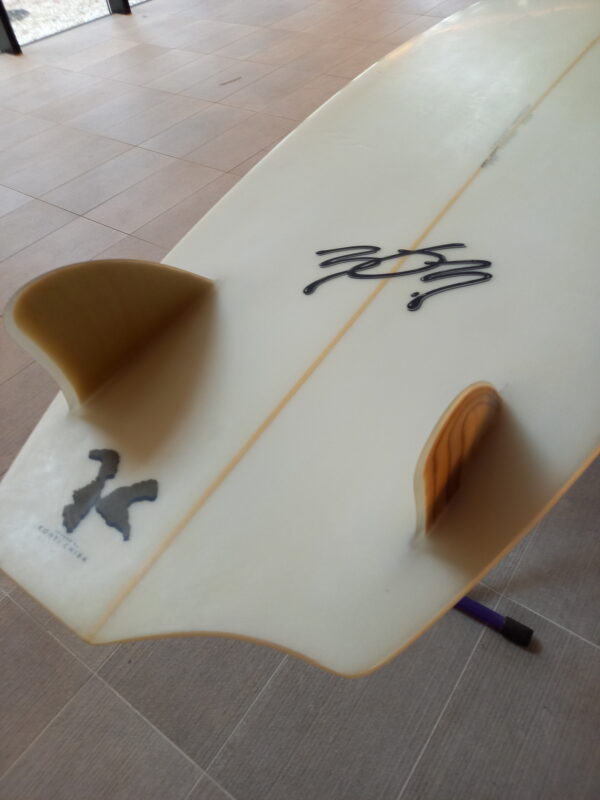 ホットタブモデルは、303が少しの冒険心を持って製作したミニボード。そのボリューム感はもとより、非対称のテールデザインが自慢のツインフィンです。もちろん2つのフィンの大きさも非対称です。