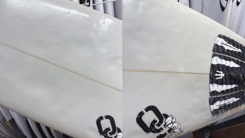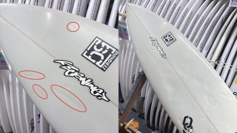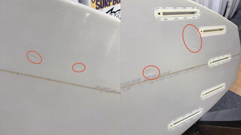 デッキ面、ノーズエリアに凹み ( 赤〇 ) 、フットマークはそれなりについています。