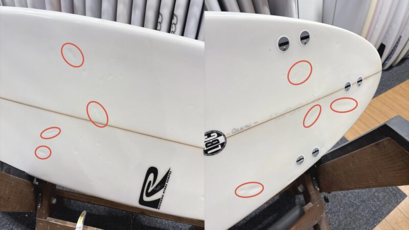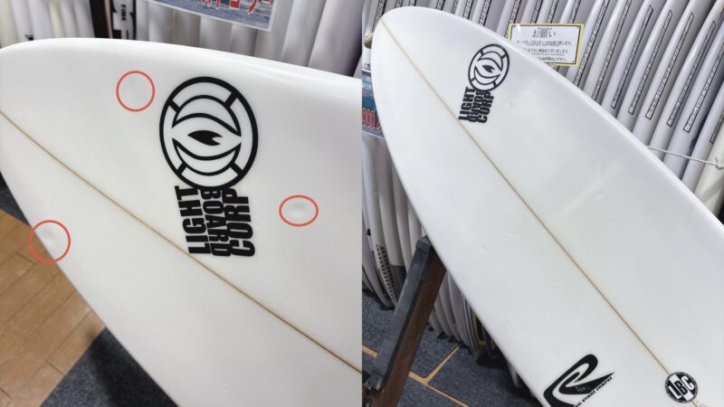 新品未使用品であっても、店舗にて展示中についた細かい傷がある場合もございます。中古ボード特有のものでございまして、価格がお安くなっている理由の一つでございます。