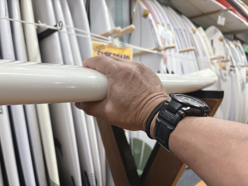 ラウンドピンテール でスムーズに大きなラインを描けるボードです。
