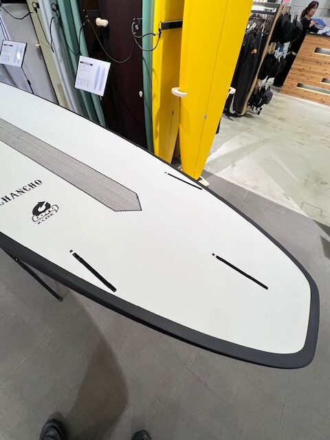【CHANCHO】は波を簡単にキャッチできるようにノーズ付近にボリュームを持たせ、またスピードとコントロールも出せるよう、フラット~シングル~ダブルVeeにし、日本のスモールコンディションに、よりマッチしたフレックスで、中上級者はもちろんの事、ビギナーからカムバックユーザーの方でも充分に楽しめれます。