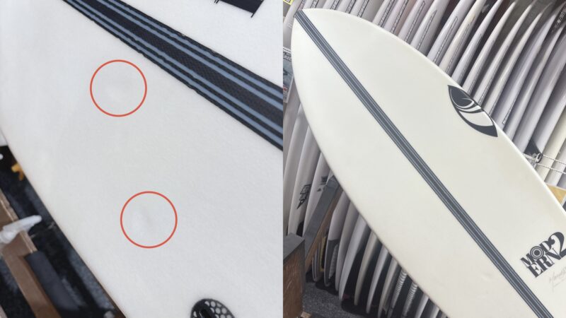 新品未使用品であっても、店舗にて展示中についた細かい傷がある場合もございます。中古ボード特有のものでございまして、価格がお安くなっている理由の一つでございます。