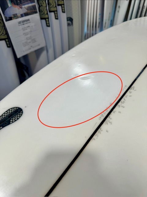 大き目のリペア跡が二カ所あり、フットマークも多く見られますがそのままの状態でお使いいただけます。