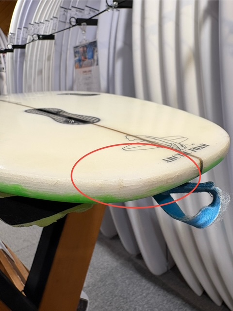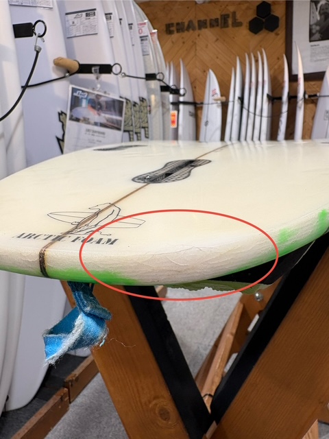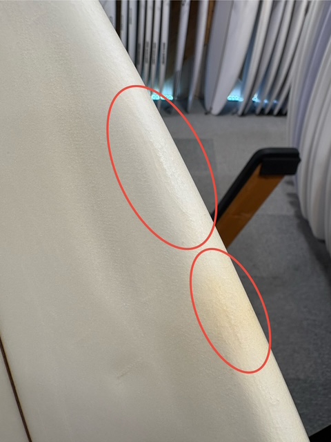 まだ使える板ではありますが、全体的な使用感があり、リペア跡や凹みも多数見られます
