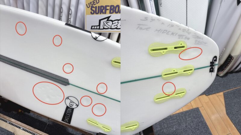 新品未使用品であっても、店舗にて展示中についた細かい傷がある場合もございます。中古ボード特有のものでございまして、価格がお安くなっている理由の一つでございます。