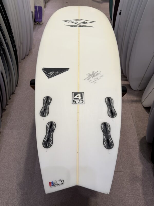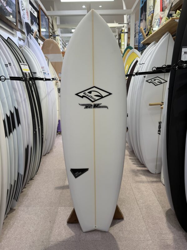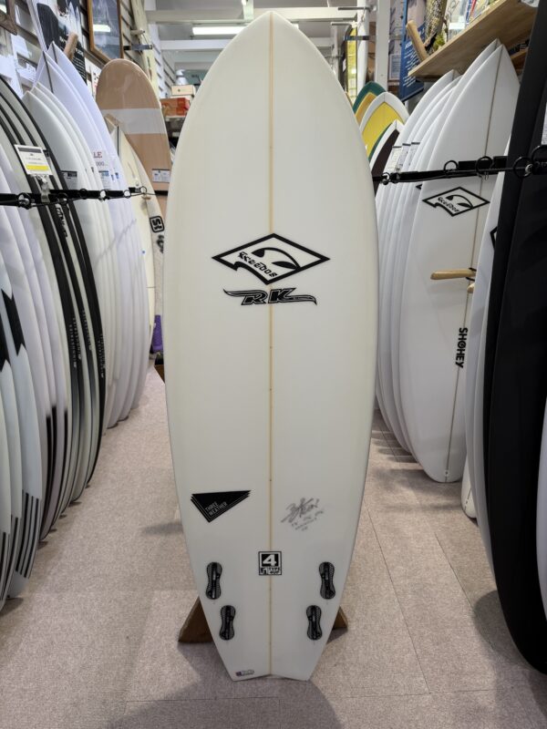 ワイデストポイントをスタンダートより10㎝フロント側に持ってくる事で規格のスペックよりも20㎝長いボートと同じテイクオフの速さ安定感がある。しかも長さは短いため取り回しもしやすいというまさにマジックボードだ。