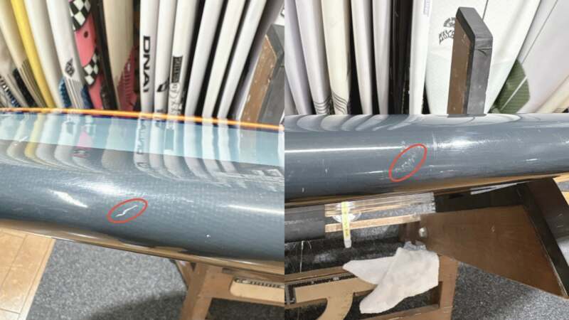 新品未使用品であっても、店舗にて展示中についた細かい傷がある場合もございます。中古ボード特有のものでございまして、価格がお安くなっている理由の一つでございます。