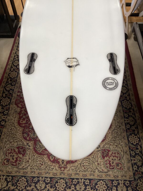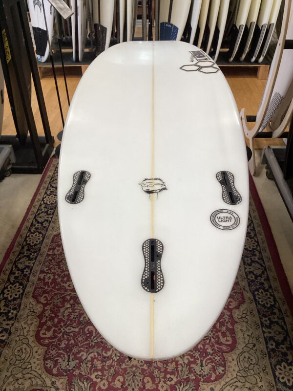ミディアムボキシーのレール形状、ボリューム感がしっかりあります。レールも入れやすく、そしてパワーを出すときも出しやすいというマルチなレール形状で一般のサーファーにはお勧めのレール形状です。