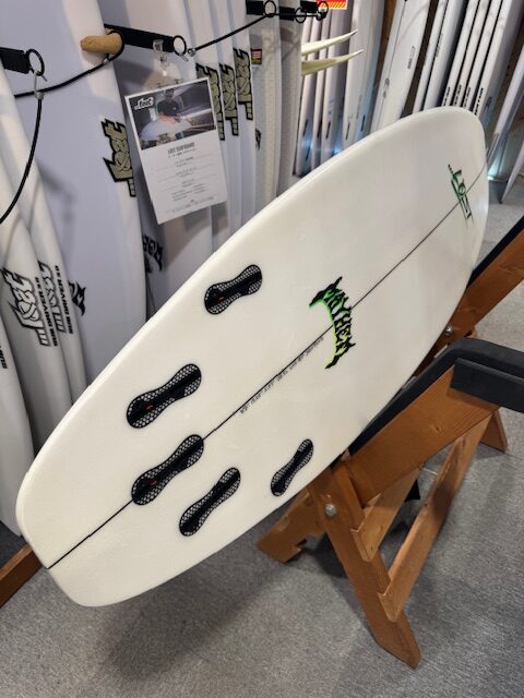 低いロッカーと広いテールは、リアフットプレッシャーでしっかりハードにドライブ、スナップ、カービング。