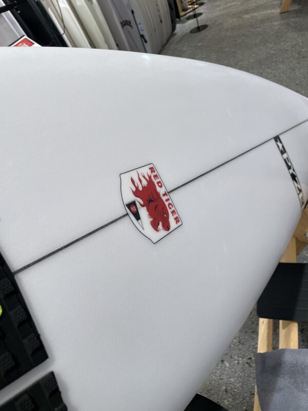 このボードのアイデアは、ジョンが競技の休憩中にいくつかの異なる「楽しい」ボードに乗り始めたときに生まれました。 昨年の彼のお気に入りは、私たちの新しいフラットロッカーFunformance ボードのWhite Tiger (5’6”) でポンピングよりも弱くよりスモールな波用でした。