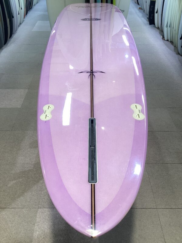 ザイン面では、やや丸みを帯びたラウンドピンテールと2+1のフィンセットアップを採用しており、多様なターンやパフォーマンスに対応可能。また、ノーズ部分にはコンケーブ、テール部分にはVボトムを施したボトムデザインが、トリム時のスピードとコントロール性を高めています。 “DT-2”は初心者から上級者まで、さまざまなレベルのサーファーに対応し、多彩なサーフスタイルを楽しむことができるモデル。
