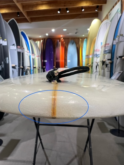 ボトムはノーズコンケーブ~フラットV、テールはハードエッジなラウンドテールにそれぞれボードデザインされています。