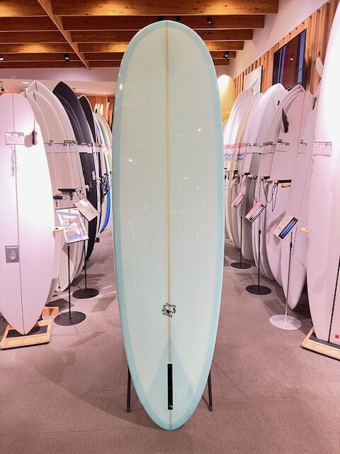 ロングボードの幅、厚さ、アウトラインはそのままに、長さを2フィート短くしたパスモデルの「ミニ・ロングボード」です。ロングボード用ブランクスから削り出されているため、十分なボリュームとロッカーを備えており、短めながらもロングボードらしい安定感とスムーズな乗り味が魅力の1本です。テイクオフが非常に早く、安定感にも優れているため、ビギナーのファーストボードとしてはもちろん、中・上級者やロングボーダーのセカンドボードとしてもおすすめです。