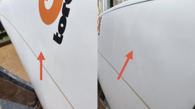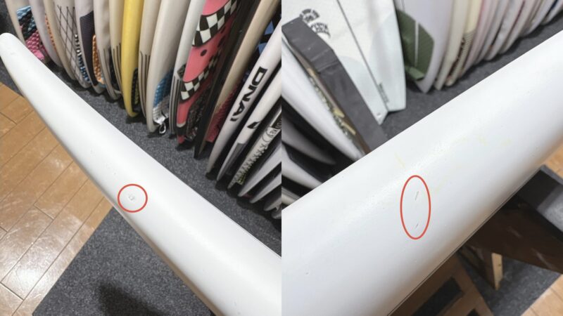 新品未使用品であっても、店舗にて展示中についた細かい傷がある場合もございます。中古ボード特有のものでございまして、価格がお安くなっている理由の一つでございます。