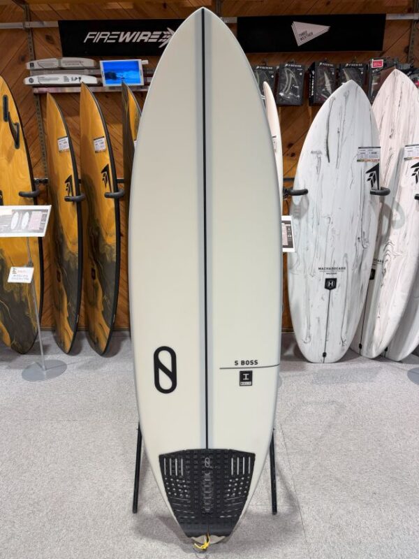 『S BOSS』幅広いコンディションに適したオールラウンドボードで、特に胸から頭のビーチブレイクでその性能を発揮しました。フィンの選択によって、クワッドとスラスターでまったく異なるスタイルを生み出します。小波やダウンザラインサーフィンにはクワッドが、オープンショルダーにはスラスターがマッチします。サイズの選び方としては、好みの浮力範囲でやや高めの浮力を選ぶと良いでしょう。