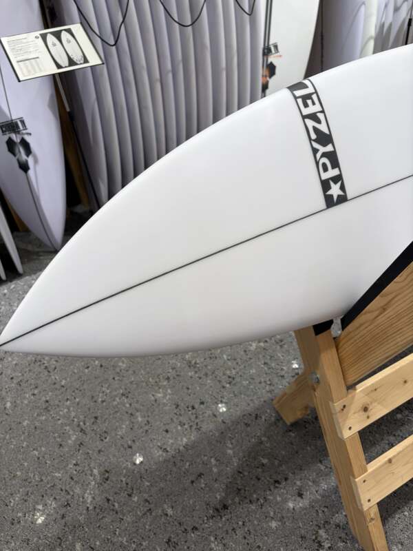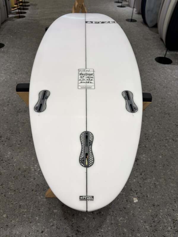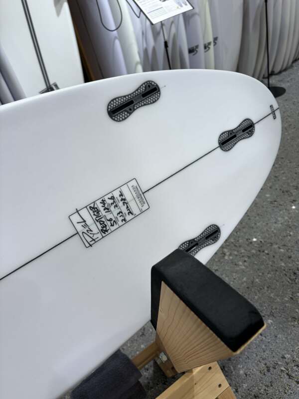このボードのアイデアは、ジョンが競技の休憩中にいくつかの異なる「楽しい」ボードに乗り始めたときに生まれました。 昨年の彼のお気に入りは、私たちの新しいフラットロッカーFunformance ボードのWhite Tiger (5’6”) でポンピングよりも弱くよりスモールな波用でした。