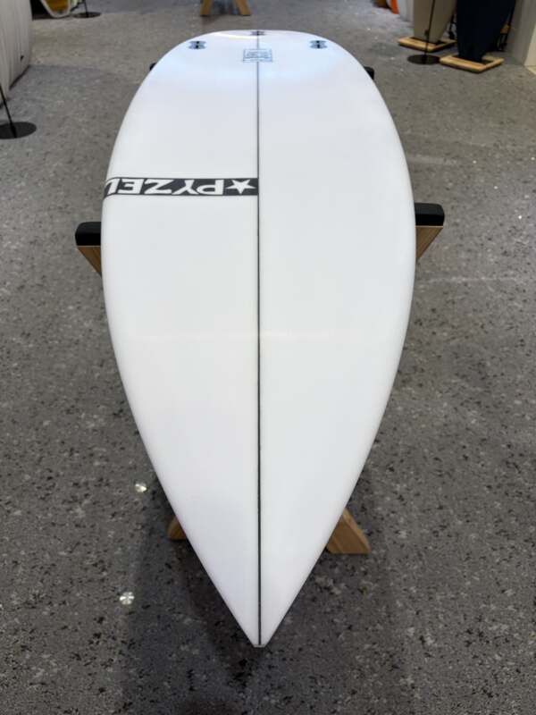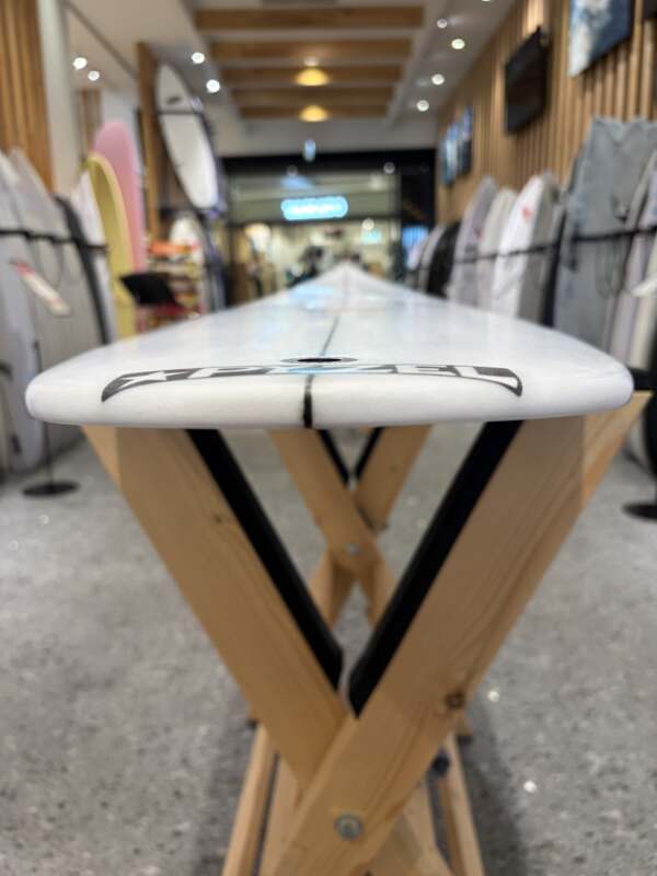 ノーズからテールまでの厚みバランスフォイルは最適なバランスが取れており、ボードの前半分は後ろ半分よりわずかに薄くなっています。 デッキはフラットでレールに向かってより多くのボリューム をキープします。 実際のレールはアウトラインとの適正 形状(ボードを腕の下に持っている場合は手の母指球の下) となっており、感度とレールの食いつきを維持するためにテーパーレールとなっています。