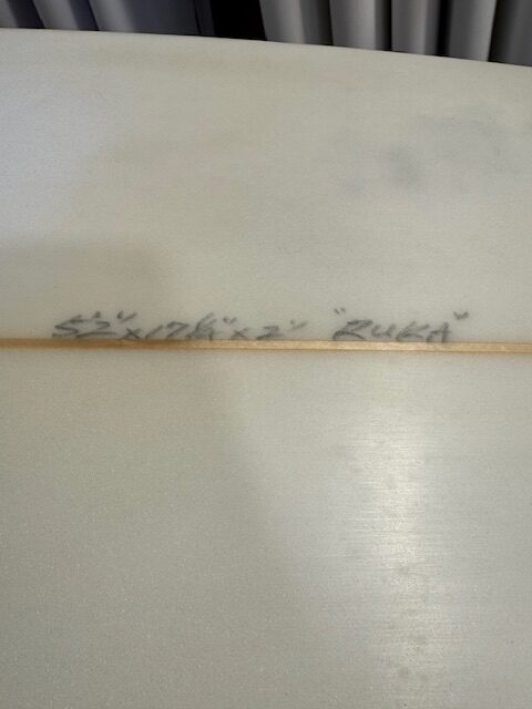 所々凹みや大き目なリペア跡がありますが直してあり、まずショートボードを体験させてあげるには使いやすい一本です!