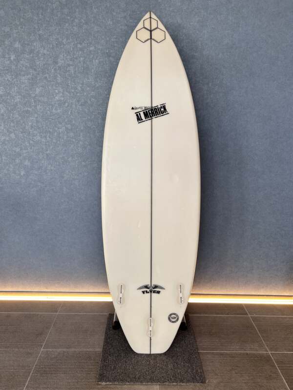 日常的なコンディションで毎日サーフィンするのにベストなボードであるThe Flyerは、シングルコンケーブから始まり、ミドルにかけてダブルコンケーブに変わり、テールにかけてはVeeが加わるモデルだ。また、アルの専売特許であるバンプスカッシュと若干ダウンしたレール、そして絶妙なかぎ鼻ノーズを備えている。自分の身長とほぼ同じ長さで乗るのがおすすめ。