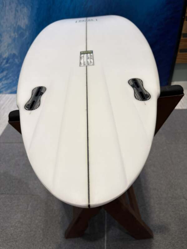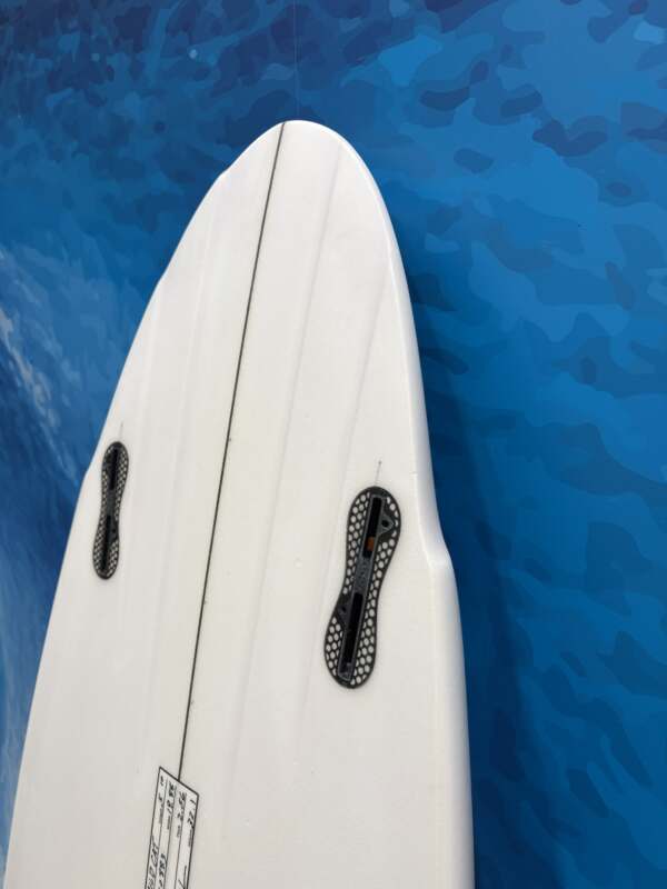 ボトムカーブはクリーンなフラットロッカーですが、パドルスピードはもとよりテイクオフ時の前足を