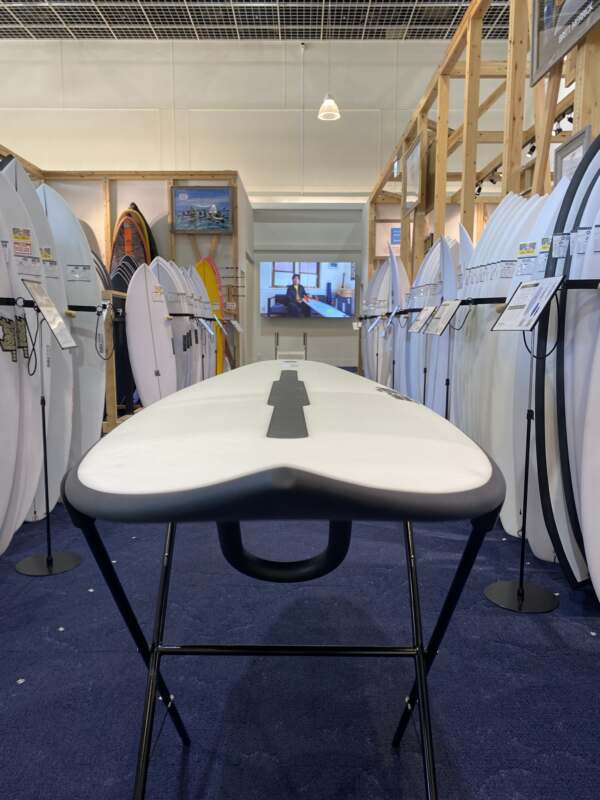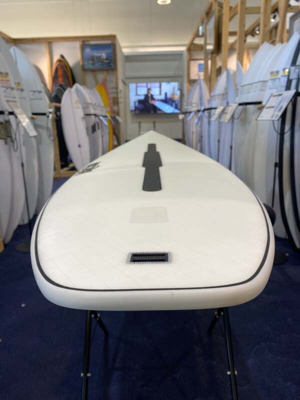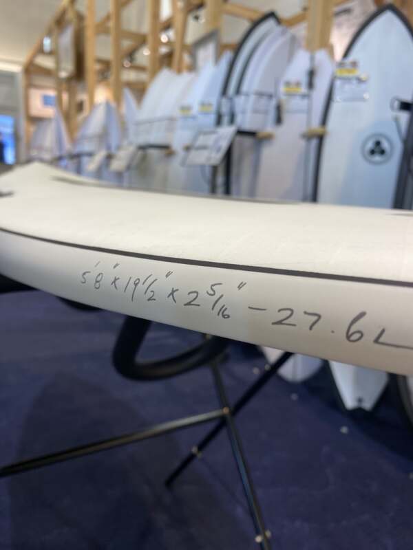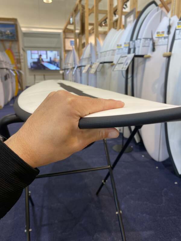 アウトラインは前作”XERO”と同じく【BLACK BOX】のサイズスペックと完全一致し、少しふっくらとしたアウトラインとなっていますが、いくつかの変更点(アップデート)があります。それは”XERO”シリーズでは初めてとなるスワローテールを採用、細めのスワローテールに5FINプラグを新たに組み込んでアップデートした事により、ノーズからテールにかけてのアウトラインのカーブがより強調され、波のパワーが弱いコンディションでのボード全体の滑走性を高めたデザインへとアップデートされています。このアップデートにより、”XERO FUSION”は前作を越えたオールラウンドボードへと進化しています。