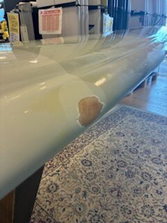 軽量のロングボードです。リペア跡が多く使用感が非常にあります。
