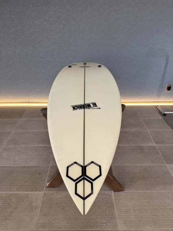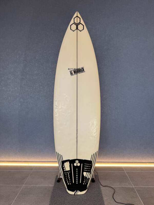 日常的なコンディションで毎日サーフィンするのにベストなボードであるThe Flyerは、シングルコンケーブから始まり、ミドルにかけてダブルコンケーブに変わり、テールにかけてはVeeが加わるモデルだ。また、アルの専売特許であるバンプスカッシュと若干ダウンしたレール、そして絶妙なかぎ鼻ノーズを備えている。自分の身長とほぼ同じ長さで乗るのがおすすめ。