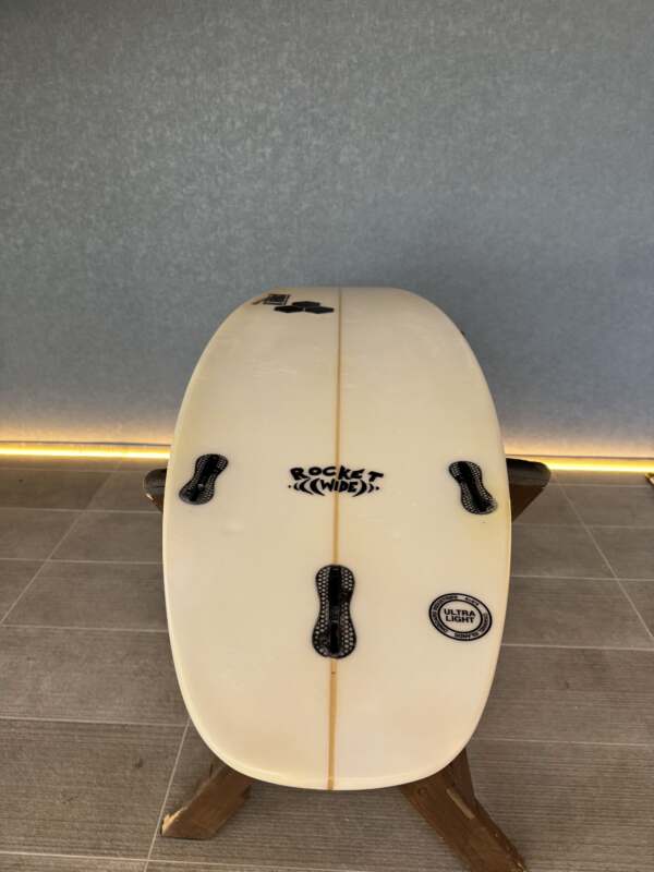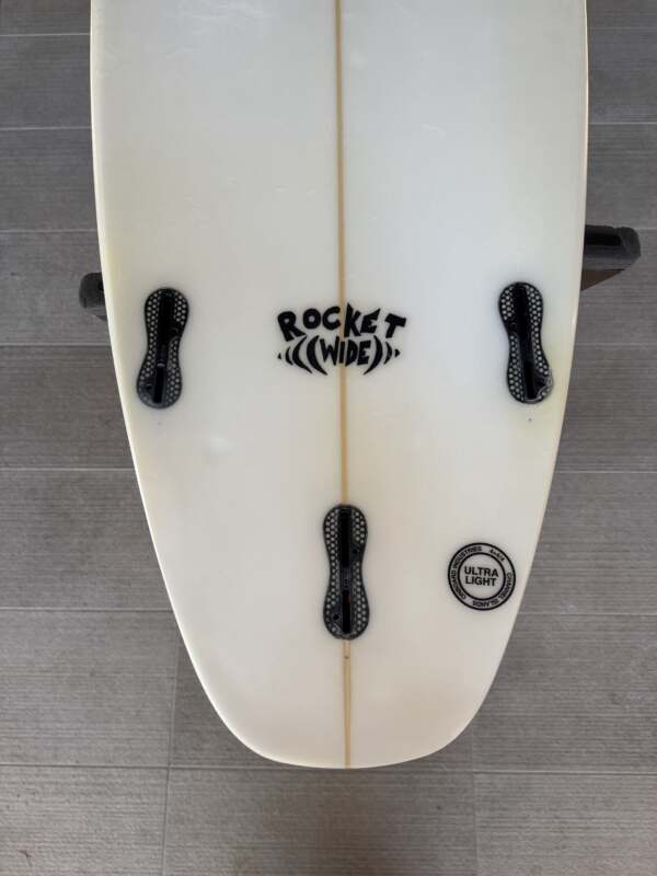 「僕を含めて僕ら兄弟はThe Rocket 9で得られるスピード感とコントロール性が好きだったんだけど、そのファンでパフォーマンス性に優れた部分を同じレベルでパワーのない小波用のボードに適応させられないかって考えたんだ。The Rocket Wideは、波のフラットなセクションをスケートのように乗っていくためにテールブロックをよりワイドにし、パドリング時によりスピードを得られるようにノーズエリアもさらにワイドに設定した。波がそれほど良くないときでもファンな要素を増やせるようにデザインされた、短くてワイドなスケートのようなマシンさ。スモールウェーブの日でもがっかりする必要はもうないよ。だってThe Rocket Wideがあるんだから!」