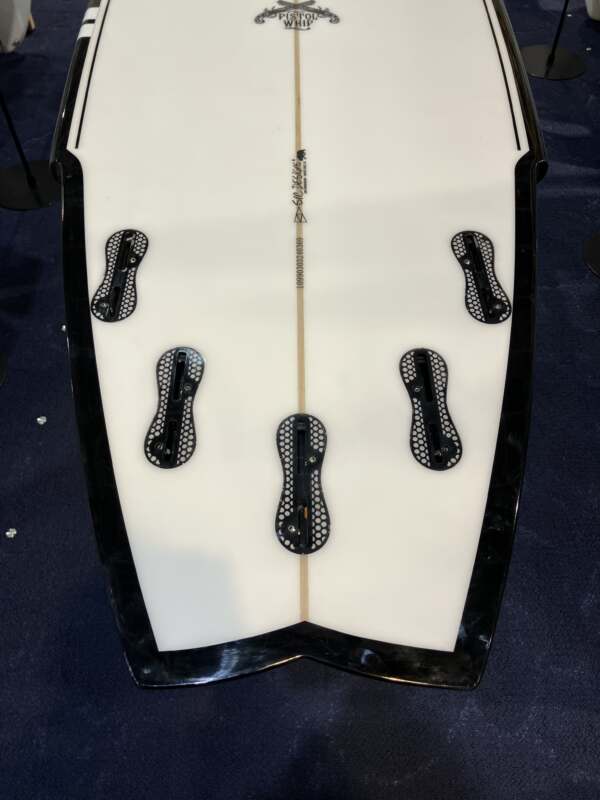 ピストルウィップには5つのFCS2フィンボックスが付属しており、クワッド、スラスター、ツインフィンとして乗ることができます。