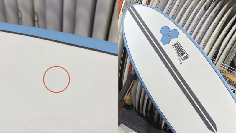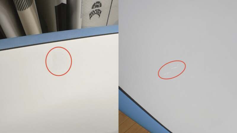 新品未使用品であっても、店舗にて展示中についた細かい傷がある場合もございます。中古ボード特有のものでございまして、価格がお安くなっている理由の一つでございます。