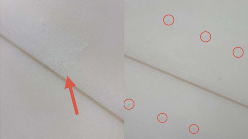 この穴はサーフボードが熱により、高温になった際に、フォーム内部から