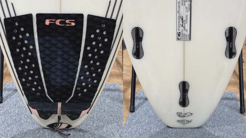ボトム形状はミディアムシングルコンケーブから、フィン間で深くなるダブルコンケーブへ。